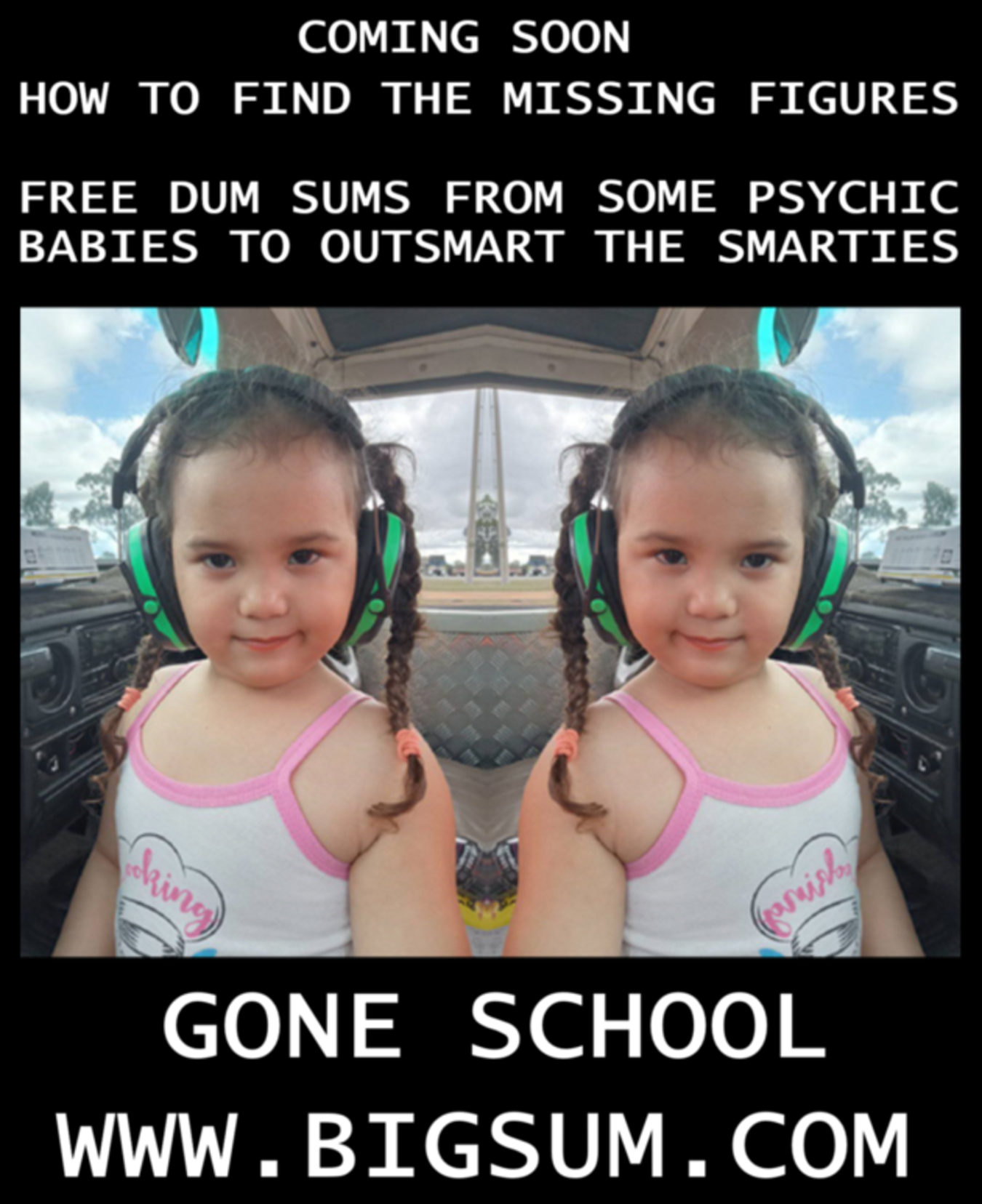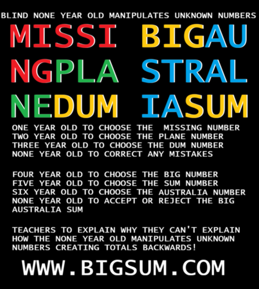 Impossible but true!....Nought year old babies from Nought School to demonstrate creating the 21 digit Dum Dum for the 30 digit Dum Sums, in the infinite Big Sums, that teachers can't understand or create coming soon